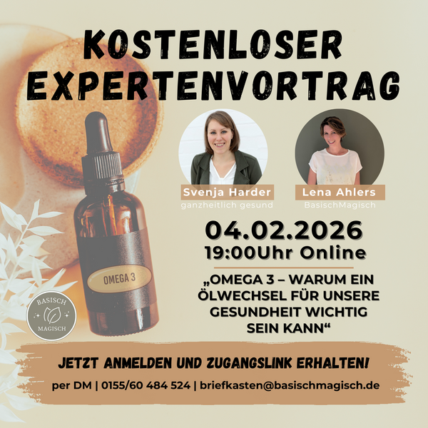 Kostenloser Onlinevortrag am 04.02.2026 um 19UhrOmega 3 – Warum ein „Ölwechsel“ für unsere Gesundheit wichtig sein kann Gesundheit beginnt in der Zelle. Damit unsere Zellen optimal arbeiten können, brauchen sie die richtigen Fette – besonders Omega-3-Fettsäuren. Unser Körper ist auf die richtigen Fette...