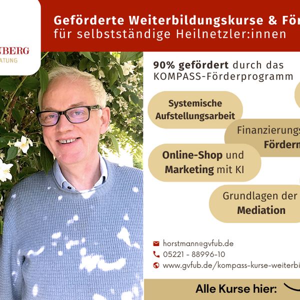 Geförderte Weiterbildungen für Menschen, die mit Menschen wirkenDie Guido von Fürstenberg Unternehmensberatung ist seit vielen Jahren im Heilnetz OWL Mitglied und begleitet selbstständig tätige Menschen aus Heil-, Beratungs- und Begleitberufen bei ihrer beruflichen Entwicklung. Guido (von Fürstenberg) versteht...