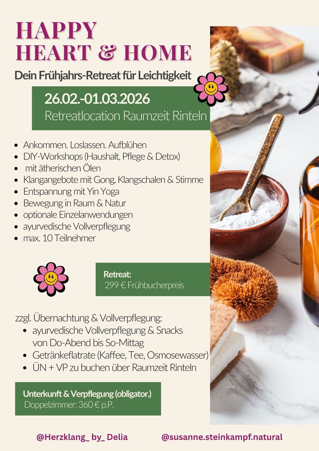 Freu dich auf drei Tage rund um Reinigung im Innen & für deine Räume, auf Ausrichtung auf Neues, Loslassen und Aufblühen.